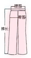 裤长:沿外测缝线,从腰带上部到裤脚的长度。